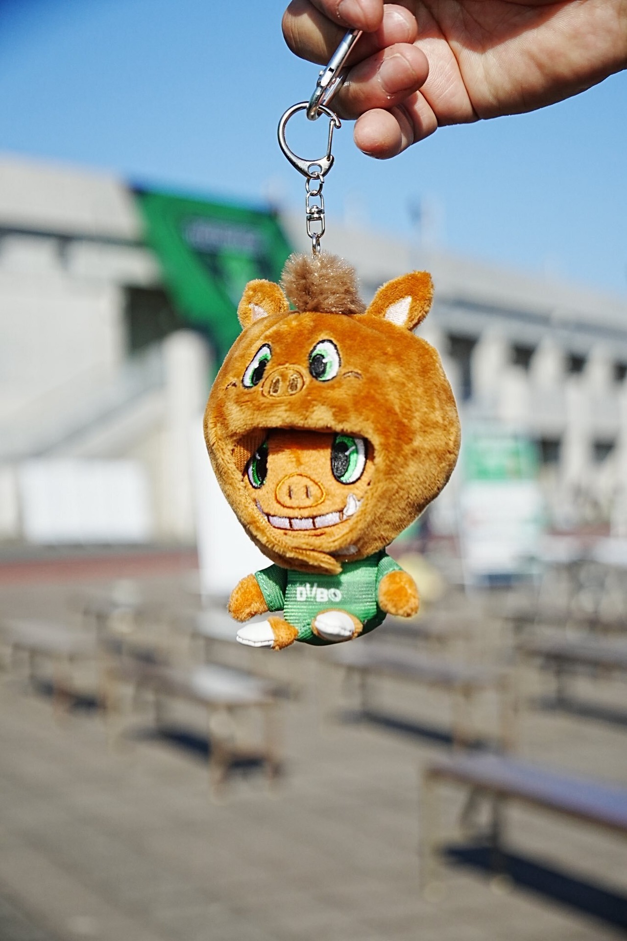 このキーホルダーは、人気キャラクター「ダイボ君」の被り物がそのままデザインされています。いろんなぬいぐるみキーホルダーが、ダイボ君になりきれるアイテムです!